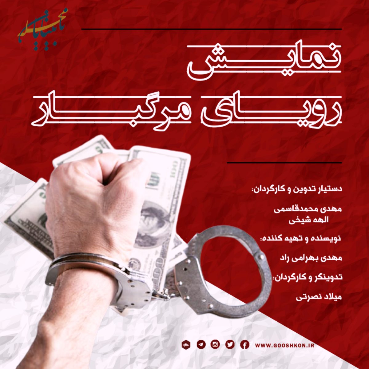 بسم الله الرحمن الرحیم سلام خدمت همه دوستداران نمایش های صوتی گروه نمایش نگاهان با مجموعه شش قسمتی رویای مرگبار تقدیم می کند دوشنبه هر هفته ساعت بیست و دو با پخش این مجموعه از رادیو گوش کن در خدمت شما عزیزان هستیم در این مجموعه در قالب داستان، به گوشه کوچکی از مشکلات معلولین پرداختیم و سعی کردیم ضمن داستانی جذاب، بازی های خوب و تدوین مناسب، لحظاتی به یاد ماندنی را کنار هم رقم بزنیم. نویسندگی و تهیه کنندگی این مجموعه را مهدی بهرامی راد بر عهده داشته که از سال 90 تا 92 تلاش زیادی کرد تا این داستان به صورت سینمایی یا تلویزیونی تولید گردد